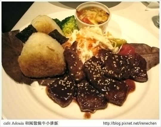 沒有味的飯糰是要配著醬燒牛排吃的,牛肉很嫩,和風醬汁比例很完美,鹹甜適中,我很喜愛。