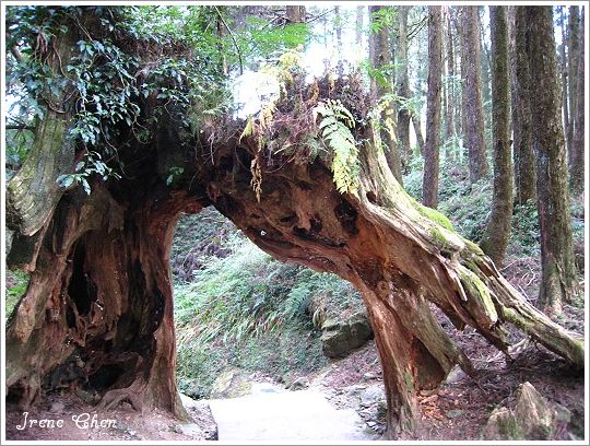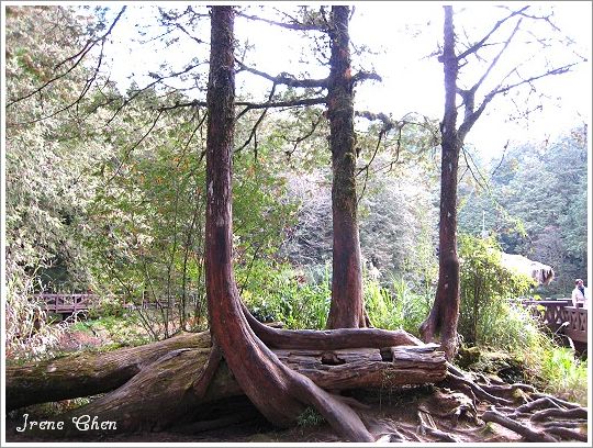 永結同心。兩株老檜木的樹頭與枝巧妙地相連成一個大心型。很適合情人留下永恆的回憶唷!