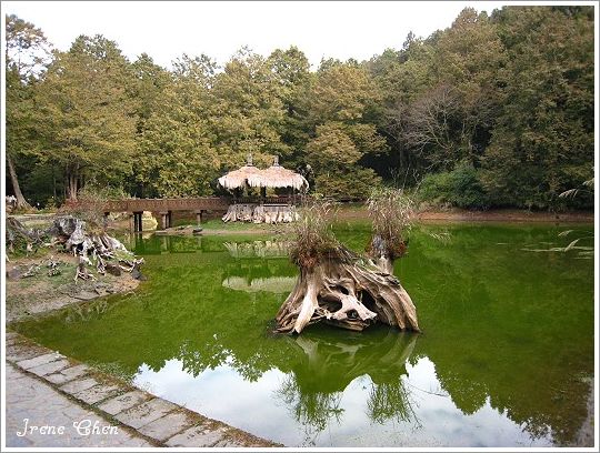 姊潭。潭中以兩座檜木為基座,建蓋兩相思亭,有木橋連接岸邊,可循著環潭步道遍覽全景。