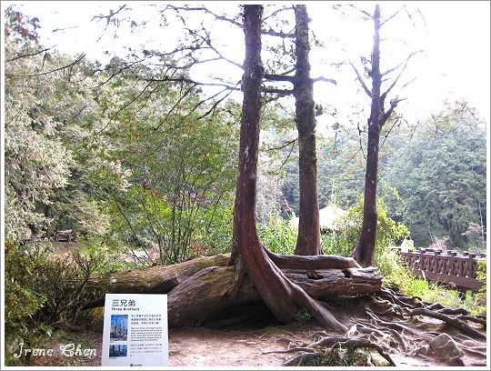 三兄弟。有三株檜木並列生長,砍伐後的樹頭上有如兄弟般的挺拔,而有三兄弟之稱。