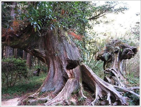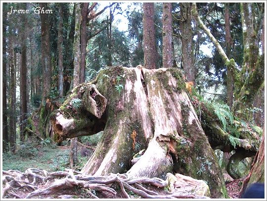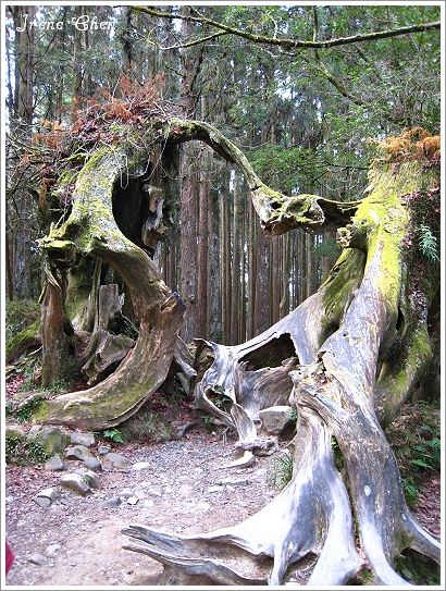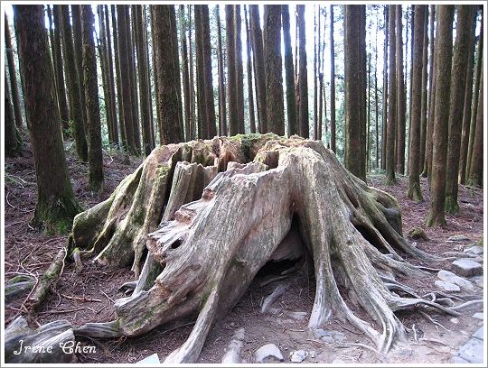 老樹頭。這是日據時期砍伐後遺留之珍貴紅檜樹頭,是阿里山林業史之見證。