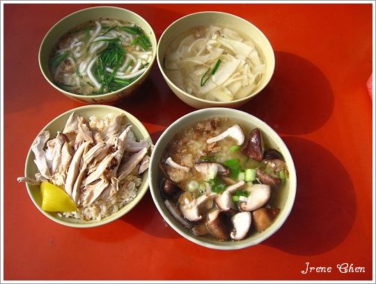 2008年的第一份早餐。我是香菇肉粥、茹是脆筍湯、格格是米苔目,而小花是雞肉飯。